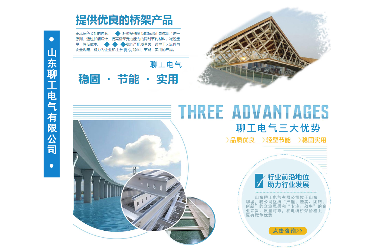 山東聊工電氣有限公司位于山東聊城,是一家銷售各類橋架的公司,公司主營鍍鋅防火噴塑橋架,鍍鋅防火電纜橋架 ,不銹鋼電纜橋架,熱浸鋅電纜橋架,鋁合金電纜橋架,熱鍍鋅電纜橋架,梯式電纜橋架等我公司堅(jiān)持“嚴(yán)謹(jǐn)、踏實(shí)、團(tuán)結(jié)、創(chuàng)新”的企業(yè)思想和“專注、效率”的企業(yè)宗旨,質(zhì)量可靠,在電纜橋架價格上更有競爭優(yōu)勢。公司追求品質(zhì),配有研發(fā)人員,進(jìn)行產(chǎn)品的改革和創(chuàng)新,服務(wù)先進(jìn)走出了一條富有企業(yè)特色的可持續(xù)化發(fā)展之路!    我公司鄭重向你承諾:保證最好的質(zhì)量,以低的價格,完善的售后服務(wù),來答謝新老客戶。可提前電話聯(lián)系。...